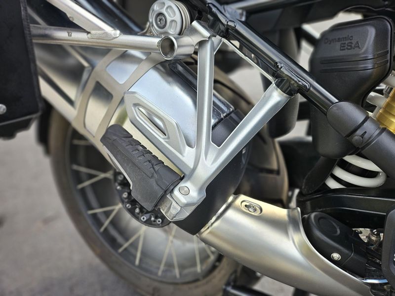 • Rear wheel location / suspension: Cast aluminium single-sided swing arm with BMW Motorrad Paralever; WAD strut (travel-related damping), spring pre-load hydraulically adjustable (continuously variable) at handwheel, rebound damping adjustable at handwheel
